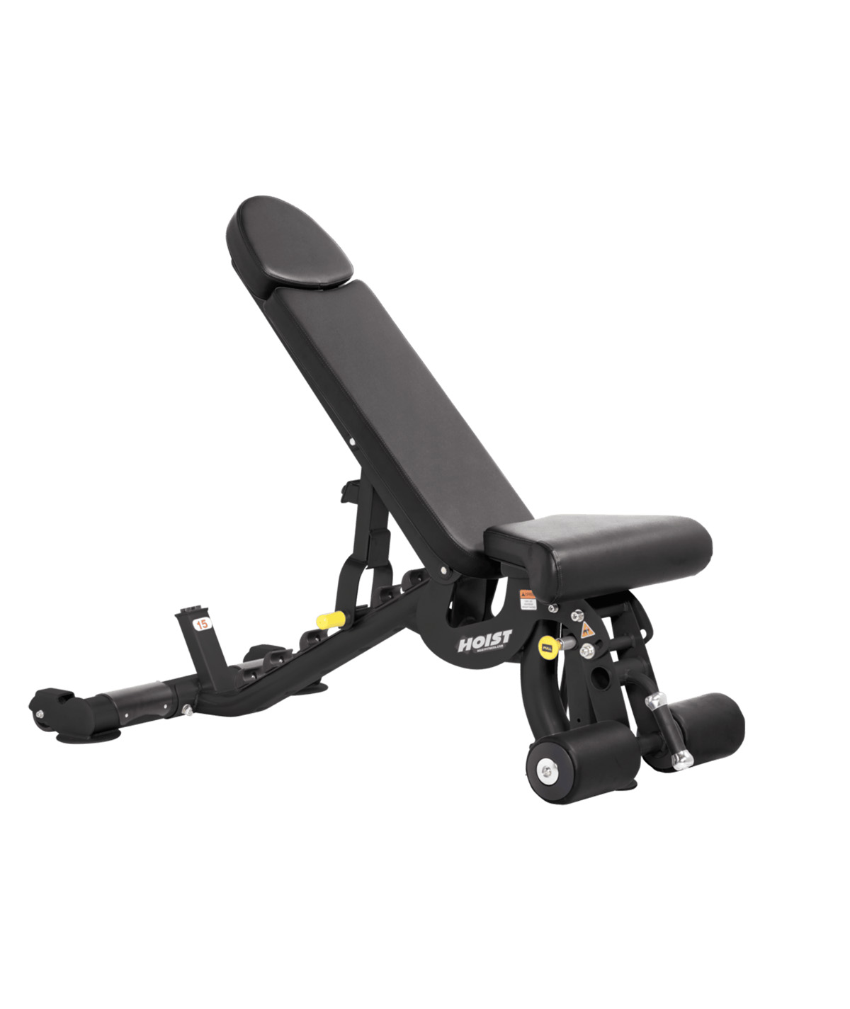• 七个位置可调节角度,范围为-15°、0°、15°、30°、45°、60°和80°,以适应平坦、斜坡和下斜卧推练习