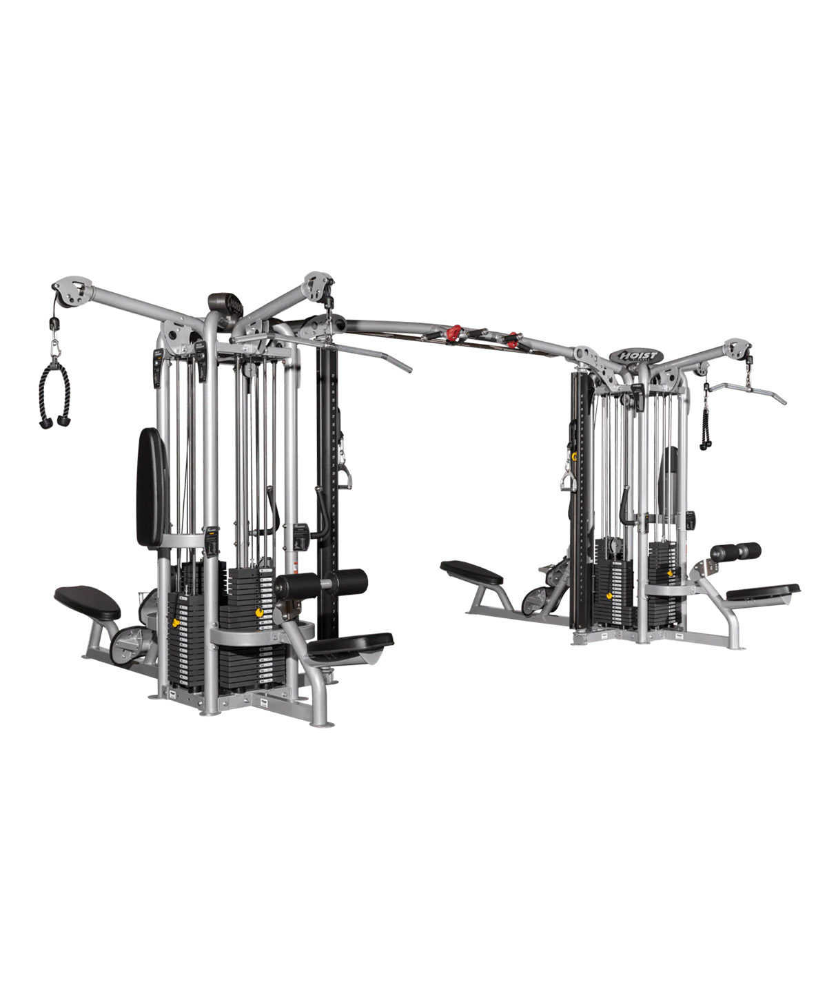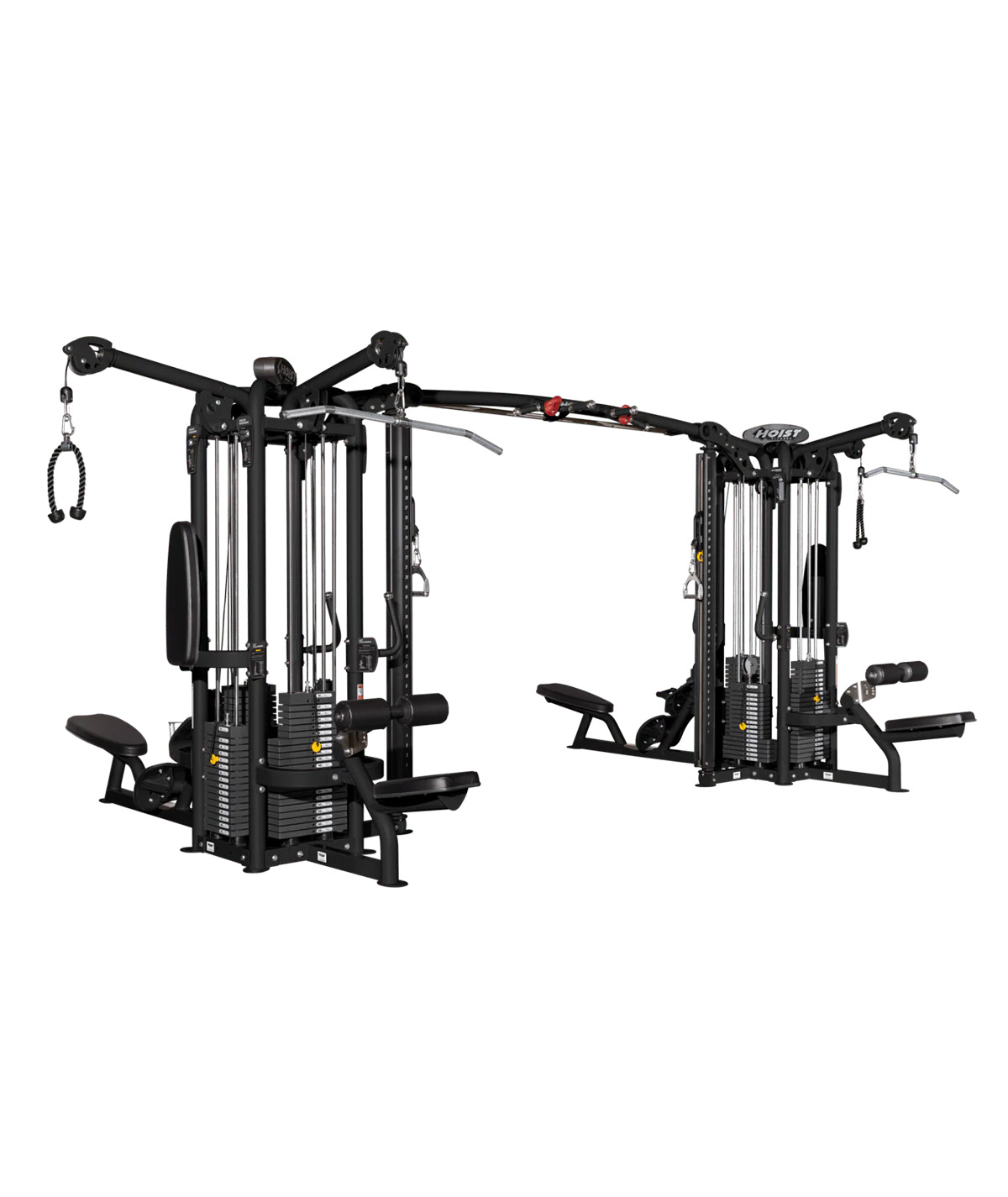 HOIST商用多站系统可配置以满足设施需求和会员的体能要求。从标准两站、四站扩展到九站或十四站,提供全身锻炼能力和自定义动作的灵活性。