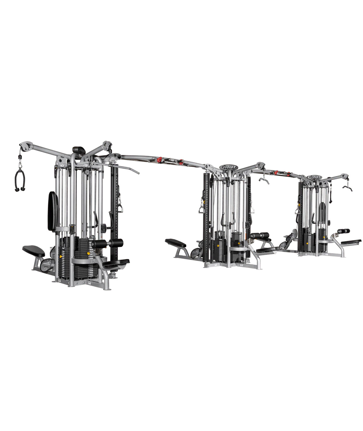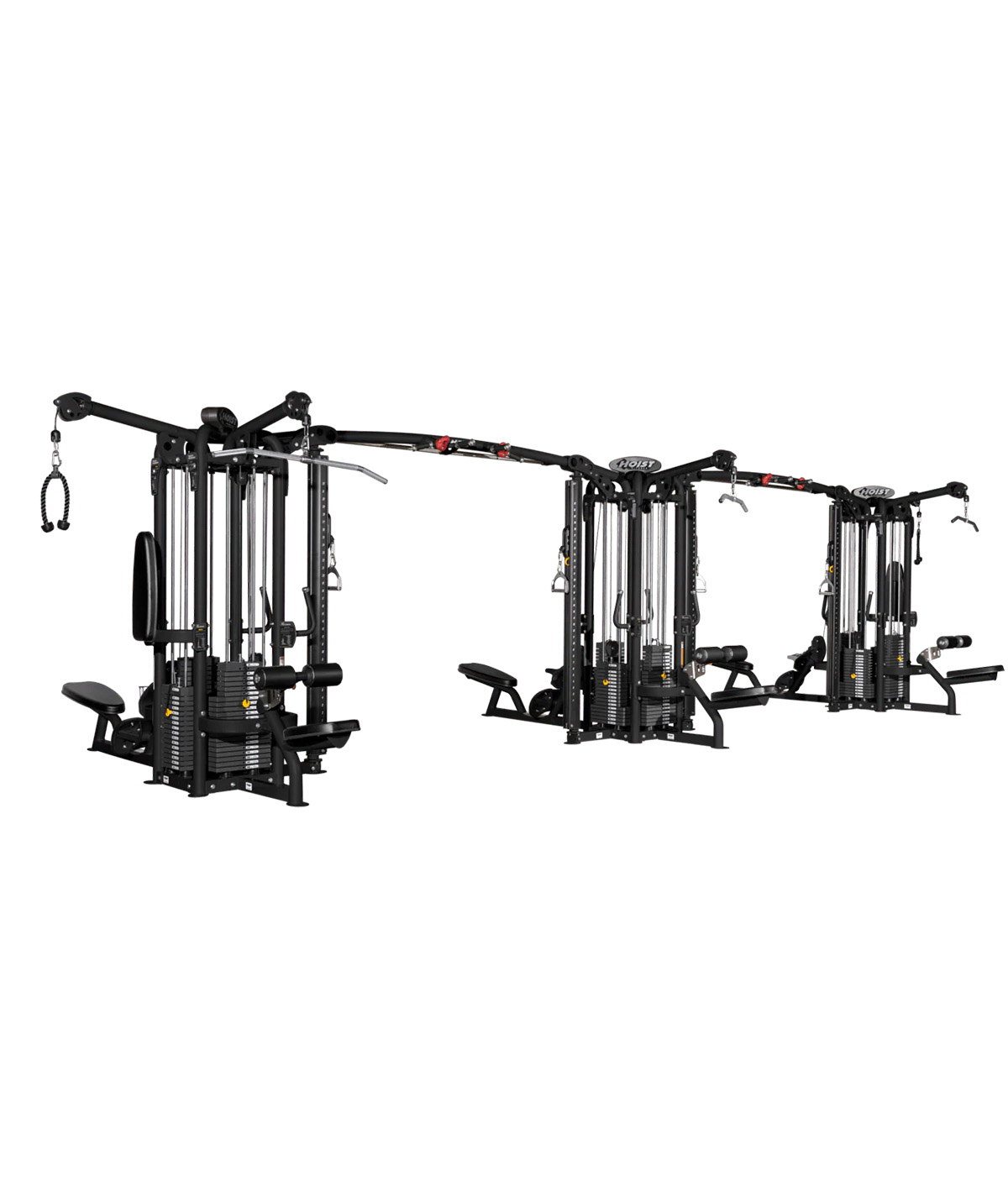 HOIST商用多站系统可配置以满足设施需求和会员的体能要求。从标准两站、四站扩展到九站或十四站,提供全身锻炼能力和自定义动作的灵活性。
