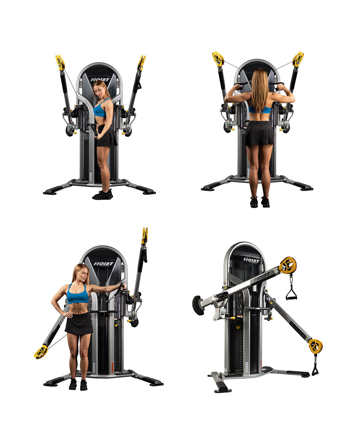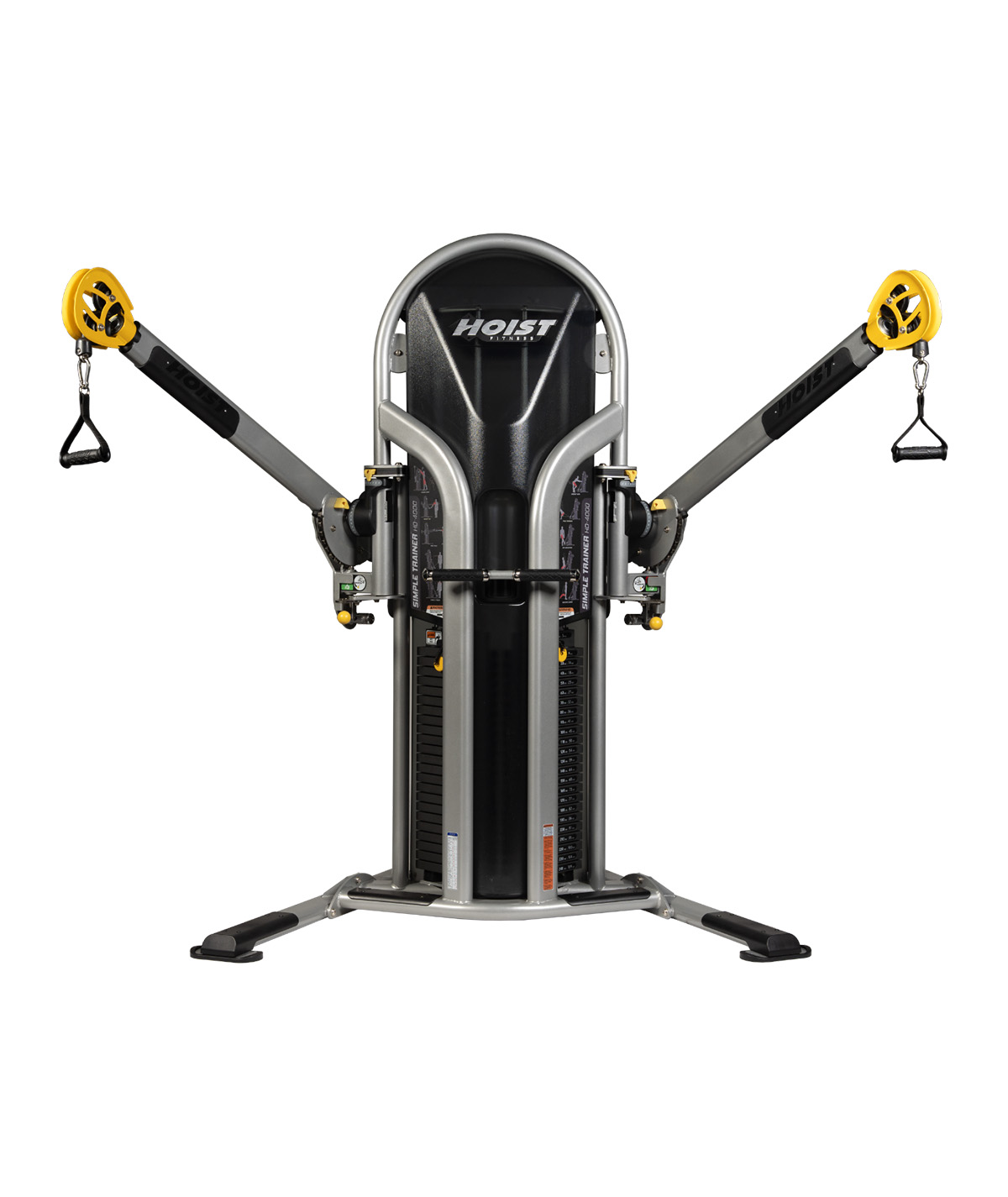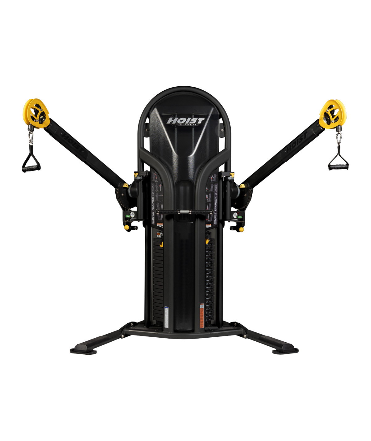 HOIST®简单训练器通过HOIST®申请专利的双轴调节系统,将功能性训练提升到新高度,该系统同时控制臂的垂直和水平调节,每侧配备一个易于调节的杠杆。拥有12个高度姿势和9个宽度位置快速设置功能,Simple Trainer钢索保持与臂轴旋转中心,避免调整时松弛,同时为用户提供平滑且一致的手感,配件包括稳定手柄和水瓶/手机架。