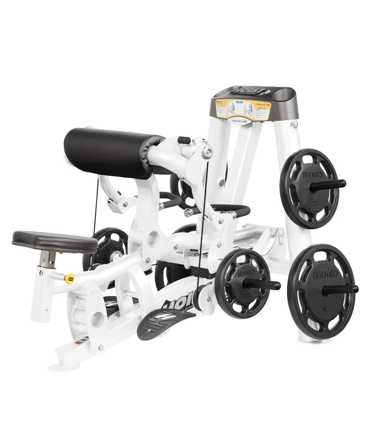 HOIST® Biceps Curl采用创新的ROX™技术,可分动交替进行弯举。带可调节座椅的加厚肘部支架为锻炼带来舒适和稳定性。多种握把确保找到最佳姿势,实现最大程度的肱二头肌顶峰收缩,比传统肱二头肌弯举机具提供了更大的活动范围。